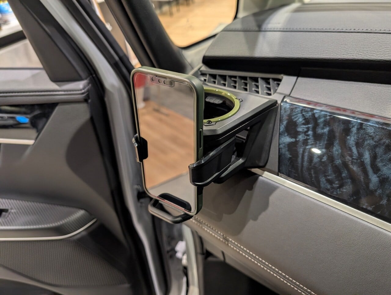 デリカD:5後期型専用ドリンクホルダー 助手席用(シャモニーグリーンリング)