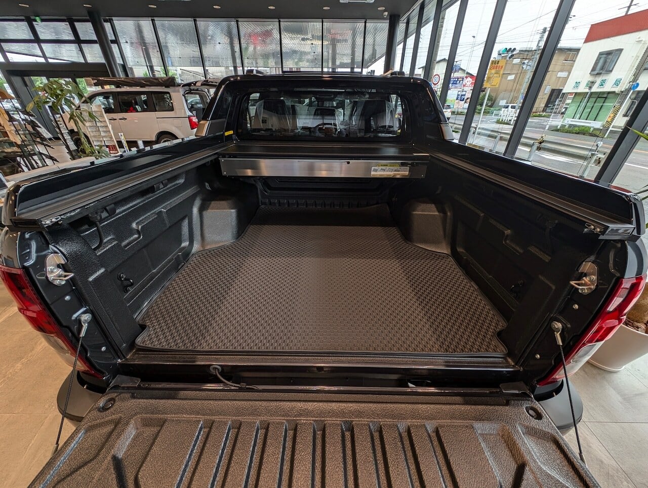 ■ 職人による「現車合わせ」の技術 荷台の個体差に合わせ、1台ずつステーを加工して取付。ガタつきのない「完璧な動作」を追求するため、当社での取付限定とさせていただきます。