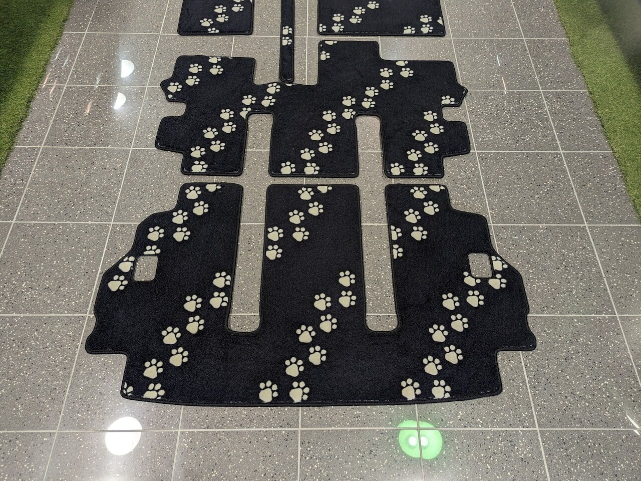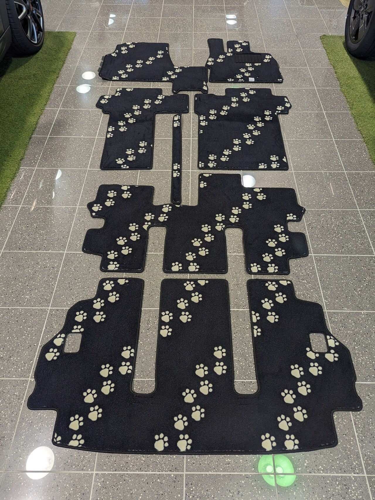 まるで車内をトコトコと歩き回ったような足跡のデザインは、乗るたびに家族や仲間との会話が弾むこと間違いなし。せっかくの新車だから、インテリアも「自分らしく」こだわりたい。そんなオーナー様に贈る、とっておきの1枚です。